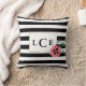 Dekorativ kudde har chic svart och vitt rand med en söt vattenfärgsblomma och faux guld accents. Anpassa med ett monogram, namn eller text som du vill ha!