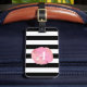 Bagagetaggen har rent, modernt svart och vitt rand, med ditt initiala eller monogram inuti en rosa vattenfärgsfläkt. Anpassa baksidan med ditt namn och din kontaktinformation.