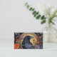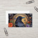 Affärskort med en svart kråka på gren omgiven av röda blommor. Coola gothisk vibe.