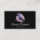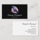 Affärskort med en bild av en svart kråka med lila rosa vingar. En rosa vattenfärgad platta bakom denna vackra mystiska fågel.