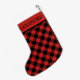 Modern röd svart gingham mönster-julstrumpa. Lägg bara till ditt namn till buffelkontrollen, rött och svart utcheckat lager av julklappar i mönster. Om du behöver hjälp eller matchande produkter kontaktar du oss genom vår butik.
