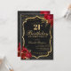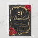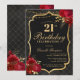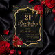 Celebrate in unforgettable style with this dramatic black and gold 21st birthday invitation. Featuring an elegant ornamental frame, rich red florals, and a luxe-inspired layout, this design is perfect for a sophisticated evening celebration.