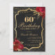 Celebrate in unforgettable style with this dramatic black and gold 60th birthday invitation. Featuring an elegant ornamental frame, rich red florals, and a luxe-inspired layout, this design is perfect for a sophisticated evening celebration.