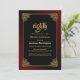 Svart 80:e födelsedagsfest inbjudan med ett ornat guld ram med ett rött ombre yttre gräns för att slutföra konstruktionen skapande en livfull inbjudan till ditt speciella tillfälle.