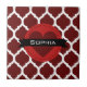 Chic Moroccan lattice mönster i en mörk röd färg med en röd och svart namnskylt med hjärta så att du enkelt kan anpassa ditt namn på. Ett sött trendig quatrefoil mönster-design som skulle ge en personlig i coola till hennes födelsedag, Alla hjärtans dag, julklappar eller studenten-gåvor.