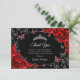Svart, rött och silver Quinceanera firande tack. Funktioner, typsnitt för skript, fjärilar, vattenfärg ro och tiara. Perfekt för en elegant prinsessan stil glam firande. Anpassa med dina egna detaljer.