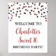 Anpassningsbar 16 födelsedagsfester poster med svart och röd konfekt.