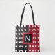 Black Red White Hearts Monogram Initial Tote Bag. Anpassa med ditt namn först.