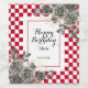 Black Ro Burgundy & White Checkat Birthday Vinflaska Etikett