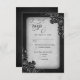 En mörk och en moody gotisk bröllopsinbjudan som bara flödar över med vackra ro och krydda kalligrafiska accenter. Perfekt till din gothic eller Halloween bröllop. Beställ dina utskrivna inbjudningar och party eller ladda ned dina digitala inbjudningar nu för en dag som de aldrig glömmer!
