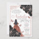 Elegant Black and Ro Guld Blommigt Quinceanera Birthday-inbjudan