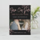 Elegant glamoröst kalligrafiskript för ro-handskrivet stil Spara Vårt datumkort för bröllop i ett enkelt modernt stil med ditt par foto och tre linjer guld text över en solid svart bakgrund med tre penselfyllda anpassningsbar rosa-penseldrag. Vattenfärgpenslar dras mönster på baksidan. Anpassa den med en bild som är orienterad mot liggande/vågrät, namn, händelsens datum och ställe och med webbplatsen för mer information. ++++++++++++ Observera att bakgrunden och textmarkeringen färg kan redigeras. Du kan ändra dem på båda sidor efter att ha valt alternativet ANPASSA IT.