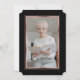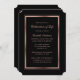 Minimalistisk svart och ro guld firande i livets inbjudan med händelseinformation i ram i ro guld på framsidan och ett foto på baksidan.