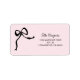 Coquette Black Rosa Bow Return Address label med delikat svart båge på mjuk rosa-bakgrund.