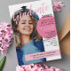 Personlig för inbjudan till Retro-studentfesten med ett bågformat foto på omslaget och ett andra foto som täcker baksidan. Student skrivet i rosa penselskript över inbjudan till studenten. Blekens rosa och rosa accentuerar färg. Snyggt och studenten inbjudan till rosa, vitt och svart.