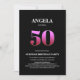 Inbjudan dina vänner och närstående till en 50-årsfirande med den här snyggten minimalistsvart och rosa födelsedagsfest inbjudan.