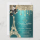 Black Roses Eiffel Tower Gold Drips Green Sweet 16 Inbjudningar