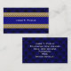 Ett affärskort för snyggt med ett mönster för dämpning av blått och svart Royal, guld-kedjans utsmyckning och vit utskrift. =========== Den anpassade information som du vill inkludera finns på den bakåtvända sidan, som också har fuktmönstrets bakgrund med vit utskrift.