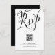 Det här anpassadet svartvitt QR-kodkort kombinerar modern bekvämlighet med rustik charm. Med elegantens kalligrafi och en svart och vit OSA kort utan tidpunkter får du en personlig beröring till bröllopsinbjudningarna. QR-koden gör det enkelt för gästerna att OSA digitalt, effektiviserar det processaa samtidigt som sak snyggt och miljövänlighet bevaras. Anpassa bara kortet med din händelseinformation och QR-koden länkas till ditt formulär för OSA av personlig.
