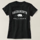 Black Sacramento Women's T-Shirt med grizzly björn och böjd text i ett slab font stil. Den här t-Shirt är underbar om du är från Sacramento eller till ge som en souvenir-gåva till någon som kommer att tycka om den.