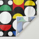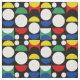 Sömlös Upprepa Geometric Scandinavian Nordic bauhaus Stil, halvsekel: Röd, vit, gult, blått och grönt cirklar och halvcirkelformer Decorative Modern Mönster Design på svart bakgrund