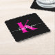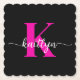 De här enkla svarta fyrkantiga eleganterna fluterade pappra underlägg med det första namn i ett trendig-skript i vitt och det första i ett modernt teckensnitt i shock rosa är perfekt för att hålla bord och räknare fria från vatten. De absorberar droppar så att du inte behöver oroa dig när du roar dig eller njuter av en drink. De är snyggt och trendig och ändå väldigt klassiska.