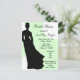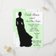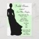 Grafik innehåller en svart silhuett av en brud med gigantiskt vitt polka dots med gröntens bakgrund. Det finns många tillgängliga anpassaden för att lägga till information om party. Köp i bulk och spara!