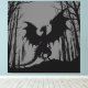Black Silhouette Dragon on Grått - Fantasy | Canvastryck
