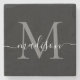 Elegant Modern Black Silver Slate Grått Monogram Feminine Script Namn Stone Underlägg