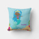 Vackra strandhusungar rumskuddar. Kute på baby blue nöjesflickor sovrum för en svart flicka som kärlek simmar med sjöjungfruar på sommaren. En söt blå hårstrå afrikansk sjöjungfru som simmar runt vackra koraller. Barns lekrumskuddar.