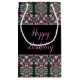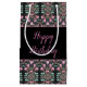 Anpassa grattis på födelsedagen-texten till ett särskilt tillfälle vid detta lilla pappra dekorativa designade presentsäck i svart med rosa med dekorativa accenter. Text kan också tas bort om du vill, och svart bakgrund och rand kan växlas till vilket färg som helst för att komplimentera stil.