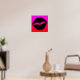 Svart läppstift skrivs ut mot ljus rosa och röd Alla hjärtans dagbakgrund.