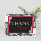 Elegant svart snöre över vit bakgrund och vit snöre över svart bakgrund med rött och svart monogram och vit kontrast, modernt tack för ditt kort.