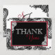 Elegant svart snöre över vit bakgrund och vit snöre över svart bakgrund med rött och svart monogram och vit kontrast, modernt tack för ditt kort.
