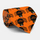 Den här söta halloween-sliten har en spooky slips med många svarta spindlar med åtta ben, gult ögon med stora svarta elever och deras munnar öppna med sina fanglar. Det är orange och det finns orange på baksidan av alla spindlar som säger "happy halloween".