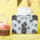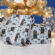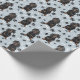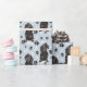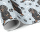 En bild av lite svart och brunt Dachshund hund är utmärkelsen i mönster på tillfällens gåva som är papper. Hund sitter mitt i mönster på svart tass avtryck och vita ben och upprepas med silver blå bakgrund.