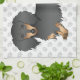 Desteis ursprungliga tecknad illustration av ett sött, långt hår svart och brunt jacka färg Dachshund-hund. Bakgrunden har mönster i grått hund tass avtryck.