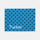 Cute Black Puppy hund spaltade över en ljus sommarblå filt. Anpassa med ditt val av namn eller speciell text för din "bästa vän".