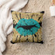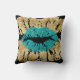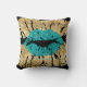 Black Teal Guld Glitter Kiss Läppar Metallic Glam Kudde