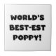 Svart text World's Best Poppy T-shirts, mugg, hoodies, cards, tote bags, magnets, keepsakes och andra världens bästa vallmoväxlar.