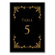 Complete your reception decor with the Black Tie Royal Regency wedding table number card. This elegant design features a deep onyx black background and sophisticated gold vintage flourishes, perfectly matching our Royal Regency invitation suite. Printed on premium Signature Matte cardstock for a luxurious, non-reflective finish. The bold gold typography ensures your guests can easily find their seating in a formal, high-end setting. Double-sided and fully customizable template for easy table sequencing.