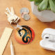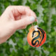 Den svarta stamdraken sitter på en ljusröd och gult bakgrund. Sol står precis bakom drakens huvud som är vänd nedåt i en elegant. Serpents kropp ormar upp och sen kurvor ner med sitt stora svarta vingar som sträcker sig utåt. Det här fantastiska mönster är en vacker nyckelkedja.