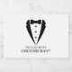 Gör Bröllop oförglömlig - Lägg till en personlig beröring med en groomsman frieri mousserande vin-etiketter med en svart bild av tuxedo kostym och med en kurvslips, med ett frieri meddelande i ett klassiskt serif-teckensnitt.