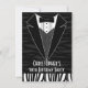 Snyggt 50:e födelsedagsfest inbjudan för manar har en snygg svart och vit zebra rand-bakgrund med klassi tuxedo och bowtie design. Den eleganta contemporaryn är perfekt för en anpassningsbar, en formell middag eller att dansa sojree 50 firande för honom.
