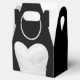 Elegant svart tuxedo och bröllop klänningsbrid och brudgummåda.
