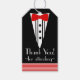 Black Tuxedo Red Bow Tie Tack- Presentetikett