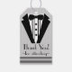 Lägg till en elegant till din gäst - tack för att du ger dig, med den här formella, svarta bågstilen och den svarta tuxedo, gästförmånstaggen. Personlig med texten längst fram och bakåt. Grått och vit strimlad bakgrund. Perfekt för ett svart tidsevenemang, bröllop gäst vill tacka dig eller insamlaren. För att se matchande produkter, besök min butik "The Hungarican Princess" på www.zazzle.com/hungaricanprincess*. Titta i min "Black Tuxedo"-avdelningskategori. Tack!