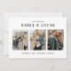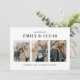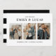 Svart typografi tre fotokollage spara datumkortet | Lägg märke till ditt bröllop-datum med det här moderna Spara datumkortet. Den har enkel typografi och tre fotokollage. Det här fotot sparar datumet är ett perfekt för att visa dina favoritfoton på förlovningen. Perfekt för alla bröllop-teman.