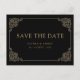 Muslimska Bröllop spara datum-vykort. Det här är en elegant, en vintage-meddelandekortsdesign med en svart bakgrund. Det finns en baroque-design i guld för gräns. Du kan anpassa typsnitt och ändra all text på kortets framsida och baksida. Kontakta designern om du vill begära fler produkter i den här samlingen.