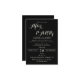 A sophisticated black wedding after-party invitation featuring elegant white typography and a modern minimalist layout. The design highlights a stylish handwritten “After Party” script paired with classic serif lettering for a refined, upscale look. Perfect for couples hosting a private ceremony followed by a celebration, this invitation clearly displays the couple’s names, event details, date, time, location, and RSVP information. A timeless and classy design ideal for weddings, receptions, and evening celebrations.